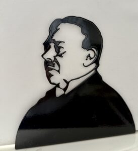 Formgivaren Jan Landqvists bokstöd föreställande Hjalmar Söderberg (ovan) spelar en viss roll i ett kåseri av Kristian Wedel publicerat i Göteborgs-Posten den 30 september 2025 om kärlek – och Adolf Hitler. Här en länk till kåseriet, som vi återger med författarens tillstånd.